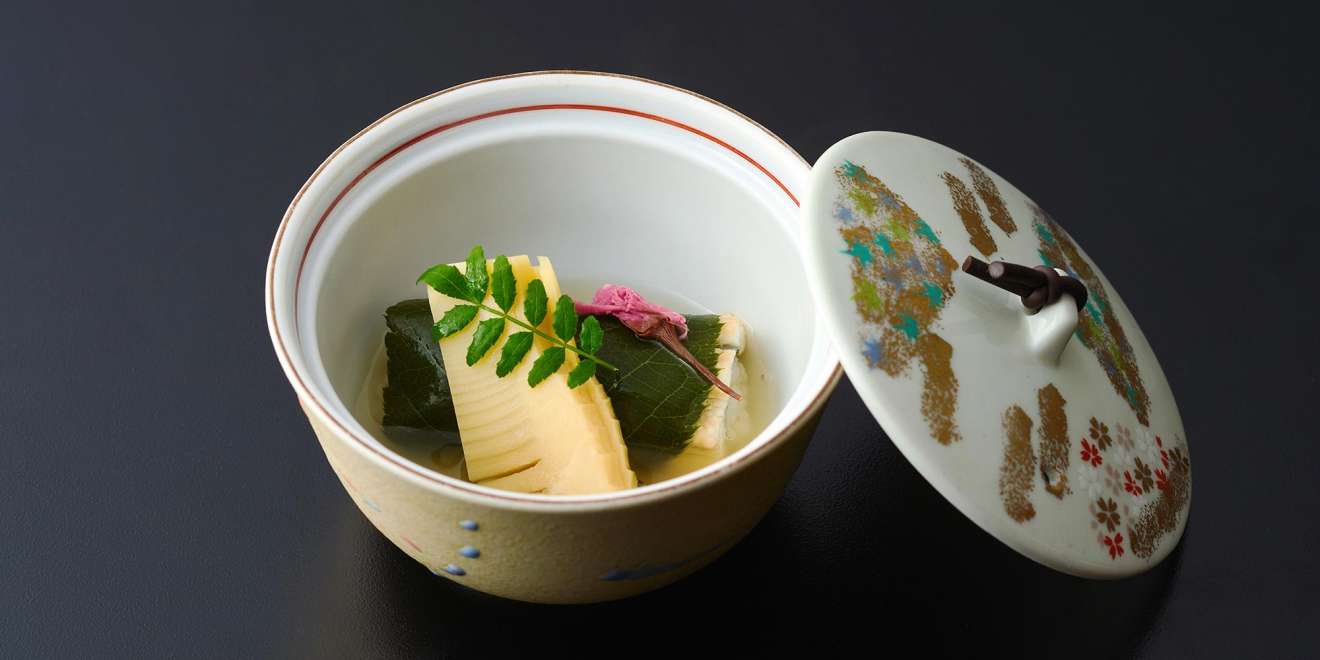 「お椀の中で、お花見を楽しんでください」と供された煮物椀。富山『御料理 ふじ居』の4月のテーマは“桜…