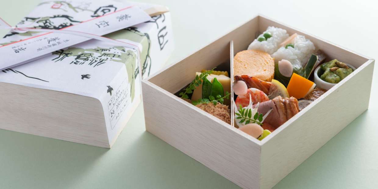 『菱岩』は、お客様のお好みを何より大事に、時代に合わせて味や姿を少しずつ変えながら京料理の伝統の味を提供してきました。お弁当は折詰弁当の他に、塗器の半月弁当、松花堂弁当があり、いずれも年中対応しております。折詰弁当というと一般的には駅弁のイメージが強いですが、行楽や観劇、旅のお供、手土産など用途はいろいろで、春は花見弁当としてお求めになる方が多いです。