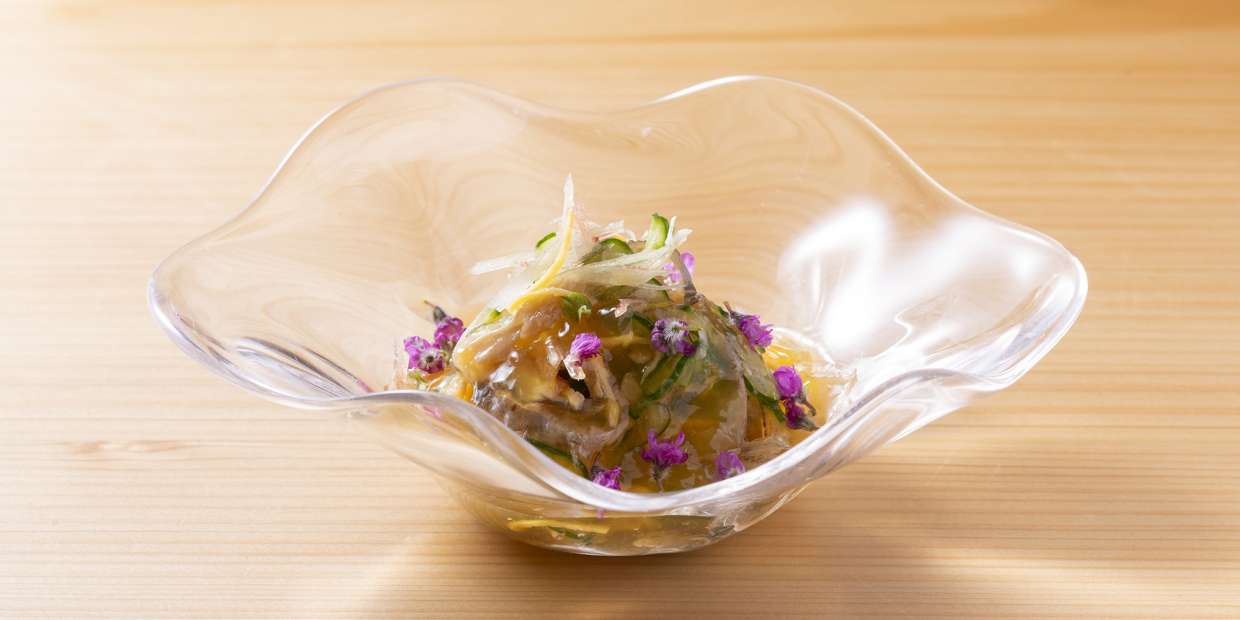 「夏らしい冷製の一品で大切にするのは、食材の歯切れの良さ、さらに酸味と香りです」と西口さん。