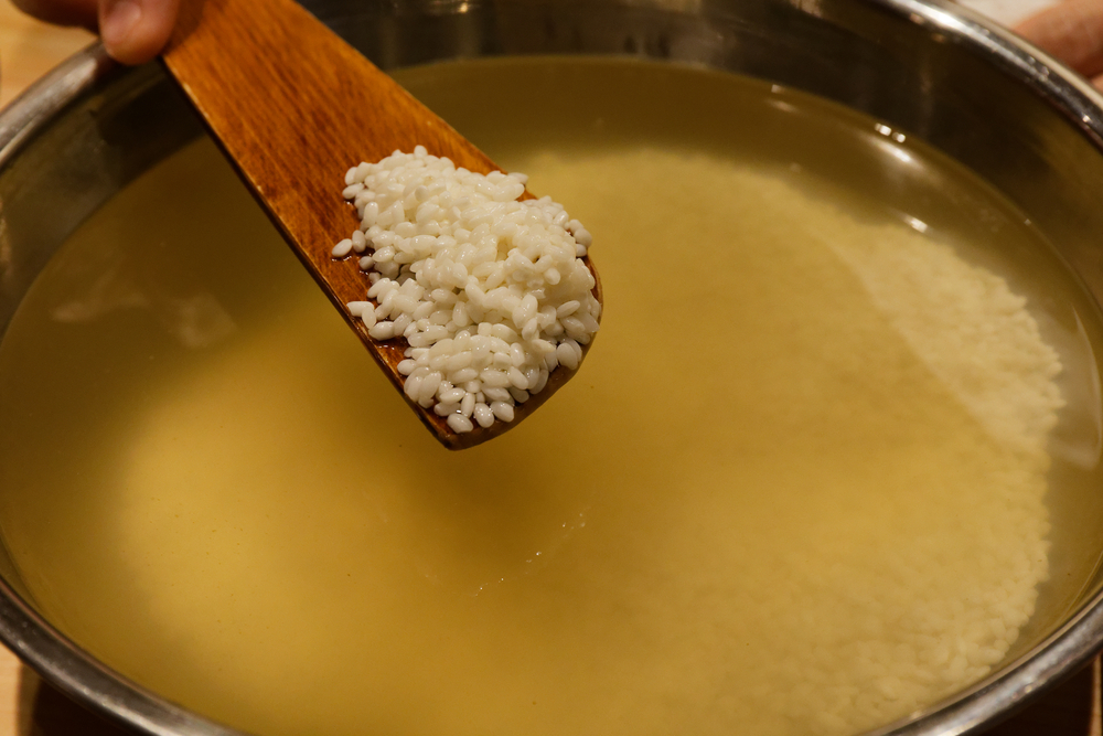 「調味だし」を用いて、もち米に香りと下味を付ける