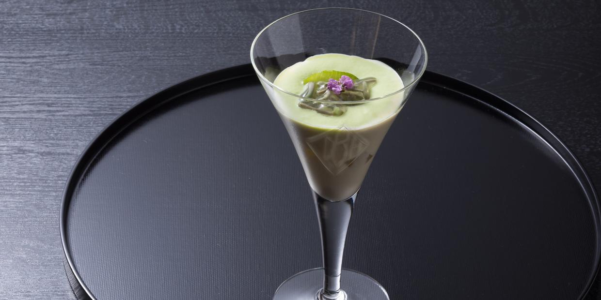 精進料理において重視される「淡味」、「命を活かすこと」に着目し、仕立てていただいたのが『和ごころ 泉』の泉 昌樹さんです。底味となるのは、「豆」のだし。カツオ節はもちろんのこと、昆布も干し椎茸も使わないことで、豆の味を際立たせます。合わせるのは、枝豆や湯葉と、こちらも豆づくし。食べ進める中で変化する“すり流しのグラデーション”。その潔いまでの引き算の調理に、ぜひご注目ください。
