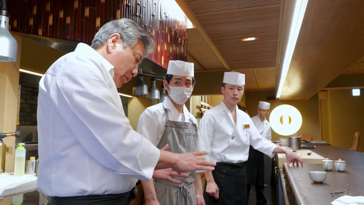 京都『衹園さゝ木』で2/4~3/3に供するコースの「試食会」の模様をお届けします。三つ星といえど、『さゝ木』では若いスタッフもお客に料理の説明を行います。そのため、大将・佐々木 浩さんは何を伝え、伝えないかという細やかな部分まで指導していきます。また、今回は昼夜コースの「鉢物」にフィーチャー。食べた感想を受け、即興で解決に導いていきます。
