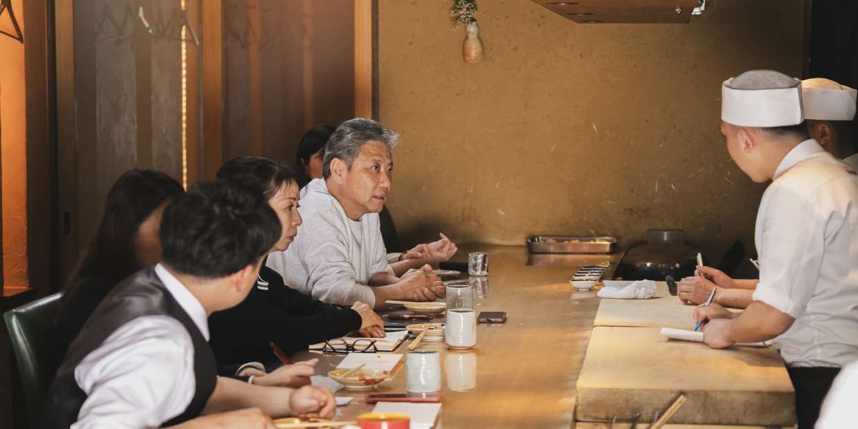 立夏を迎え、青空と薫風に初夏の到来を感じる5月。『衹園 楽味』で行われた試食会でも、豆類や夏野菜など、季節感ある食材が登場しました。また、今回は「大人の居酒屋」を謳う『祇園 楽味』で、どうしたらミシュランガイドブックで星を獲れるか? も話題に。そのためには何が必要か。『衹園 さゝ木』店主・佐々木 浩さんが説きます。