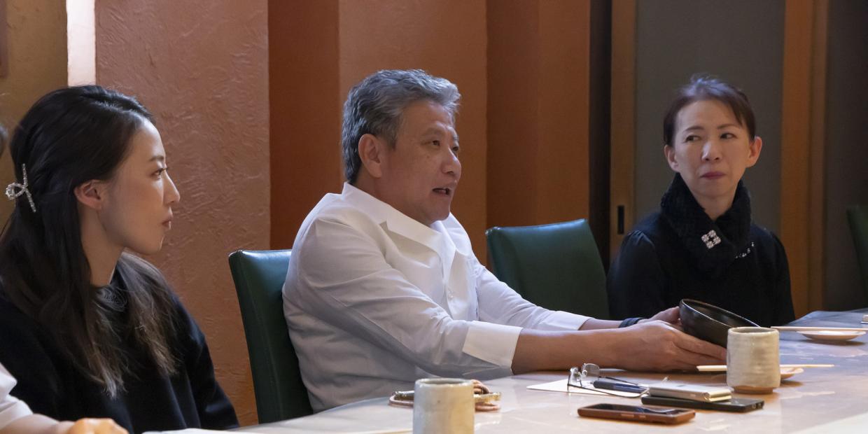 試食したのは佐々木さんのほか、左/『衹園さゝ木』女将の佐々木太津子(以下:太津子)さん、中/取締役の佐々木結花(以下:結花)さん、右/ソムリエの佐々木恭輔(以下:恭輔)さん。