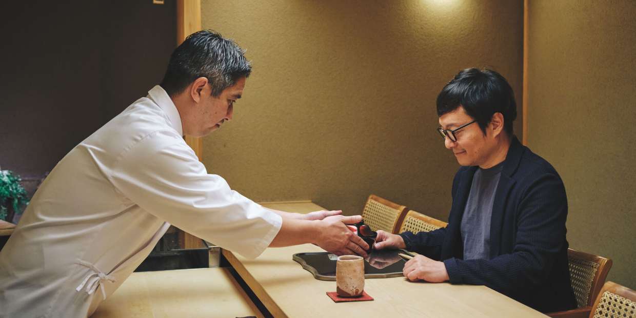 京都『徳ハ本也(トクハモトナリ)』は、40年ぶりに井戸水が湧いたとニュースになった上御霊(かみごりょう)神社のすぐ近くにあります。他にも酒どころである伏見や上賀茂、街中など、京都では多くの場所で水が湧き、長らく日本料理の歴史、文化を支えてきました。店主・松本進也さんと“世界No.1フーディー”浜田岳文さんの対談もいよいよ最終回。日本料理にとって大切な水をテーマに展開します。