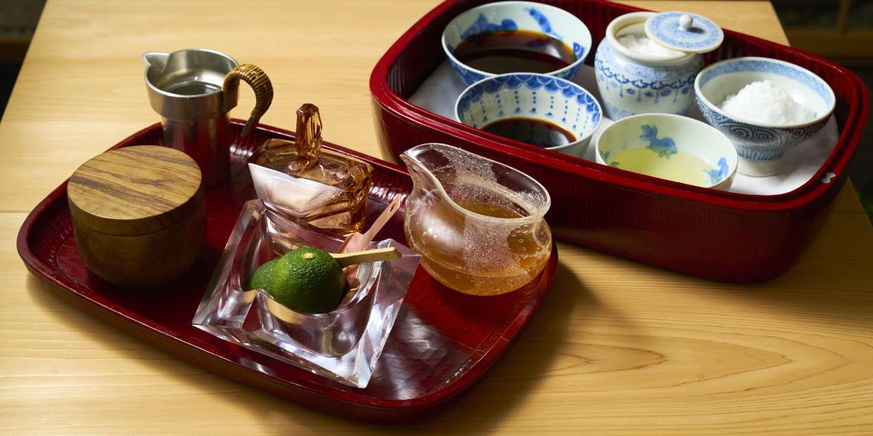 京都『浜作』の板前にある、溜塗の箱に入った調味料の数々。「お客さまの目に映るものは鑑賞に堪えうるものでなければならない」という三代目主人・森川裕之さんの美学が息づき、思わずうっとりしてしまう趣きがあります。森川さんがどのような道具を選び、使っているのか。また、調味料のセレクトについてもお話しいただきます。