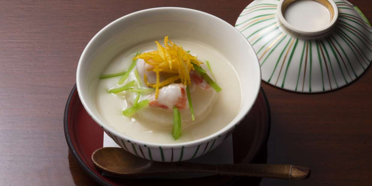 坂本 晋(さかもと すすむ):岐阜県高山市出身。18歳から下呂温泉『吉泉館』で修業し、大阪・北新地の料亭『神田川』へ。割烹『味菜』を開店し、40年が経つ。淀川や大阪湾の地魚に注力しながらも、全国各地から産地直送で旬の食材を取り寄せ、割烹料理に仕立てる。