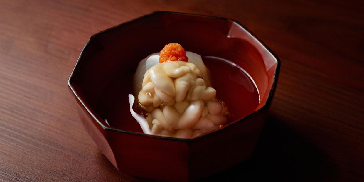 「太田修嗣(しゅうじ)さんの漆のうつわは、堅苦しくないんです。ふと触れたくなるような親しみやすさがいいな、といつも思います」と、『神楽坂 石かわ』の石川秀樹さん。店のコースでは、漆器を3点ほど組み込み、椀物には骨董を、それ以外では太田さんの漆を使うことが多いそうです。使い手を思う太田さんのうつわと石川さんの引き算の料理は、相思相愛のような相性の良さで互いを引き立てあいます。