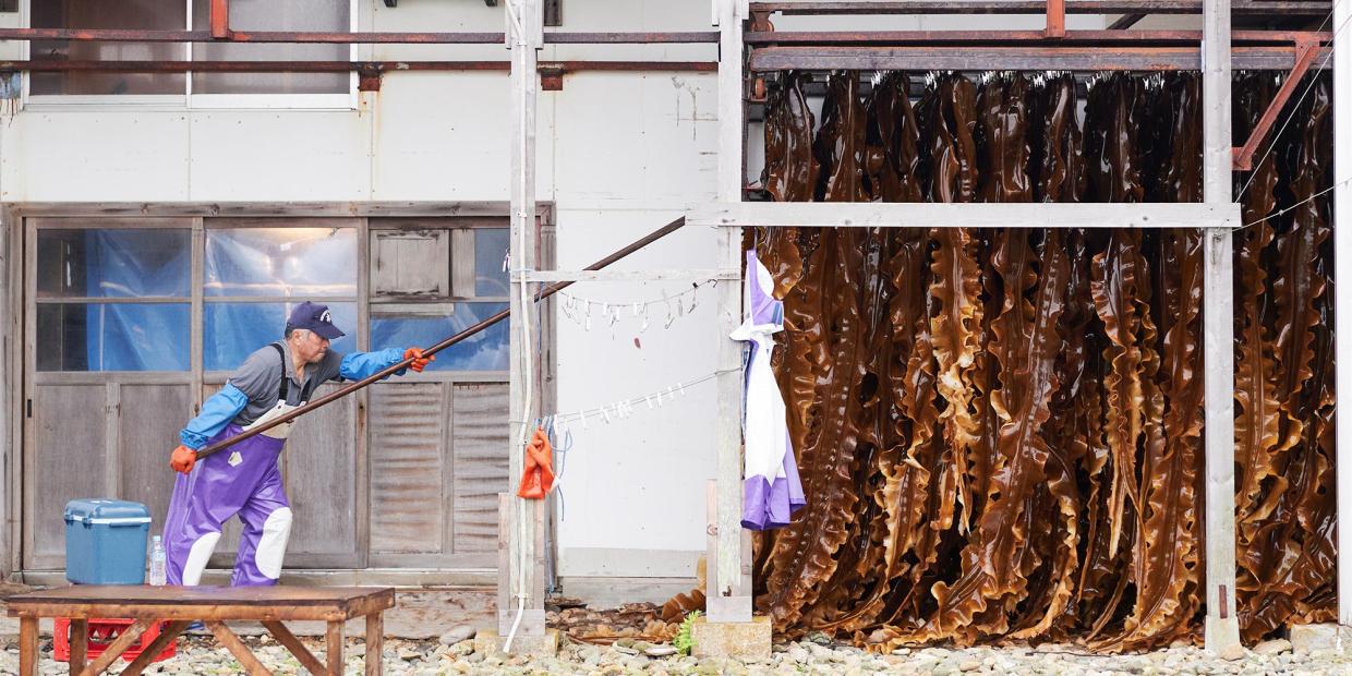 天然物に匹敵すると言われる2年養殖真昆布に出合ったのは、2023年の天然真昆布漁を取材するため、南茅部を訪れて3日目。川汲浜の吉村良一さんの作業場でのことだった。