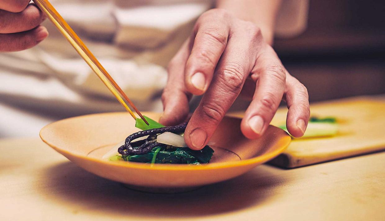 1年先まで予約が取れない店として年々人気を増している日本料理店『飯田』。その底知れぬ魅力の根幹にあるのは、素材選びや色使いなど細部に息づく徹底した美学でした。第1回は、4月の献立より、飯田流の春の描き方をご紹介します。