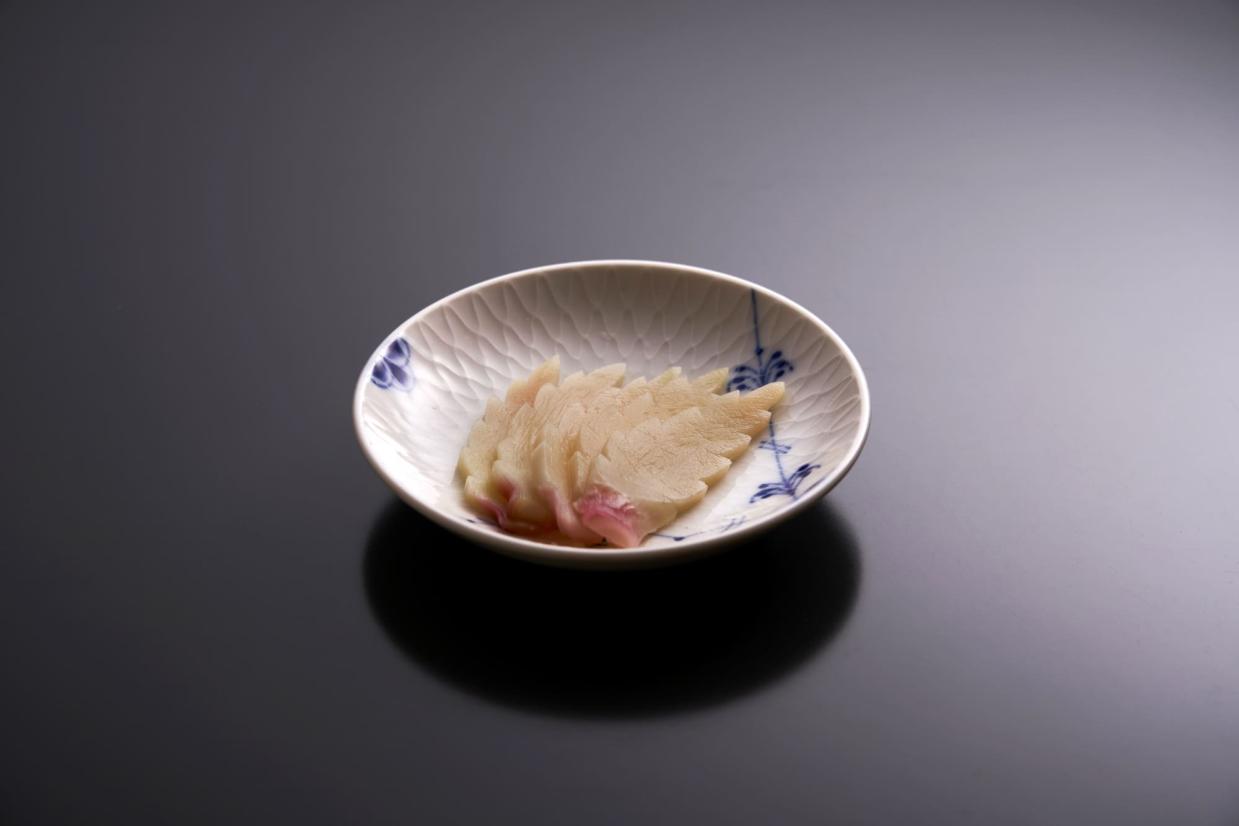 気温が上がり始めると、品書きに欠かせなくなるのが酢の物。新ショウガに新レンコン、ミョウガなどの酢漬けが大活躍する季節です。そこで今回は、北新地の割烹『さか本』元大将の坂本靖彦さんが、いろんな料理に使える八方酢のレシピを大公開。6月7日に動画配信した「無花果田楽」にあしらった新ショウガ酢取りの作り方を特別に“おまけ”で配信します! 料理屋らしく木の葉型にした新ショウガ。その切り方も余すところなく動画でお届けします。