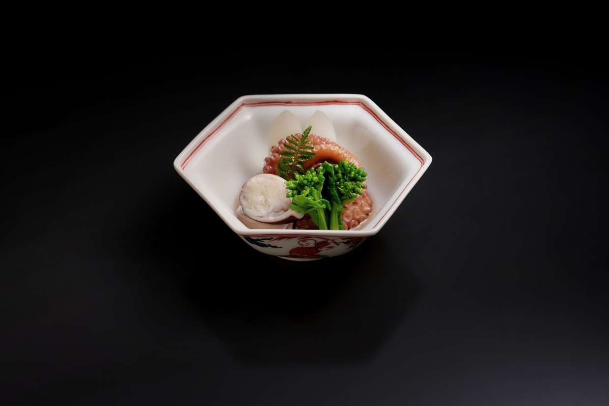 産卵期になると胴に卵がみっちり詰まり、火を入れるとその卵が飯粒のように見えることから名が付いた飯ダコ。大阪・北新地の割烹『さか本』では、さっと煮てから冷ました煮汁に漬けて味を含ませ、卵はむちっと、吸盤はぷりっと小気味よい食感に仕上げます。薄味で素材の持ち味を引き出すため、「よくよく洗うこと」が肝要だと話す元大将・坂本靖彦さんのレシピを動画で大公開!