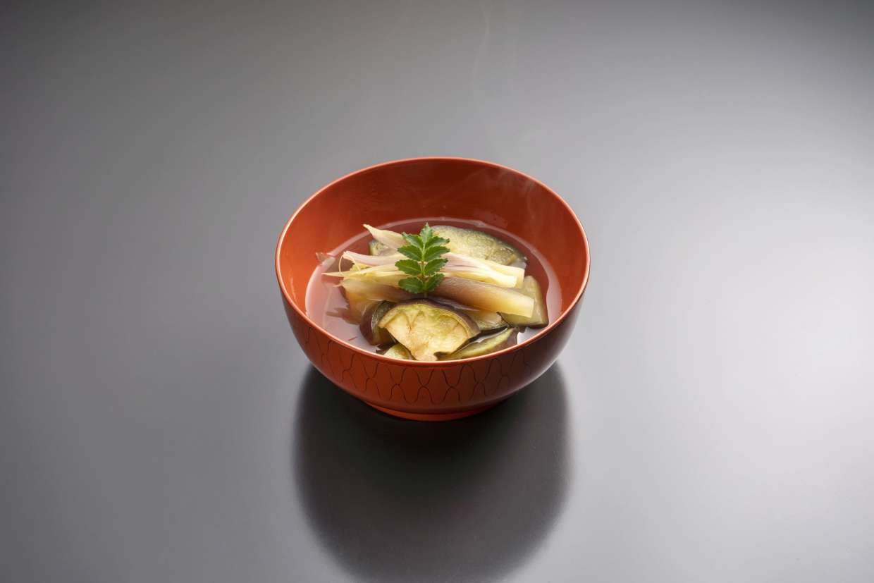 北新地が誇る浪速割烹『さか本』の元大将・坂本靖彦さんが、大阪流の割烹の技と心を動画で伝える連載第2回目。野菜も魚も端境期の5月ですが、大阪では泉州の水茄子(ミズナス)が旬を迎えます。4月にまずはハウスものが出回り、6月になると路地ものがお目見え。アクが少なく、皮も薄いため生食できることが特徴で、その糠(ぬか)漬けは全国区の人気です。今回は水茄子をさっと炊いて、茗荷(ミョウガ)と合わせた夏向きの煮物をご紹介。