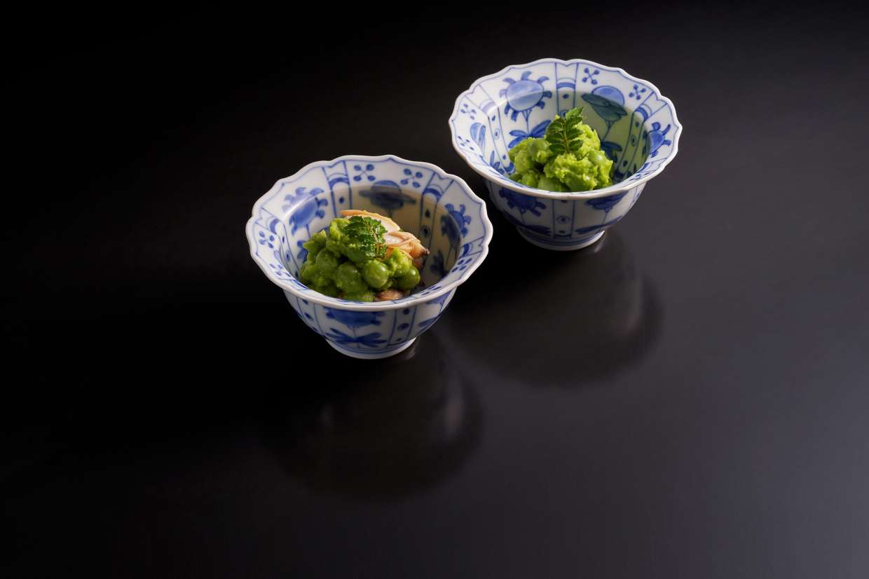 薫風が爽やかな若葉の頃、北新地の割烹『さか本』では「うすい豌豆(エンドウ)の共和え」を先付によくお出ししていたそうです。鮮やかな緑が目を引き、常連さんに大好評だったというこの一品、実は「皮が弾けたりして、丸のまま使えない碓井(うすい)豌豆を活用しよう」と、元大将の坂本靖彦さんが苦肉の策で考案したもの。今回は、相性のいいアサリと合わせています。碓井豌豆だけのシンプルなバージョンも併せて、動画でご紹介します。