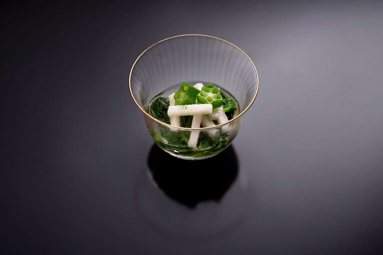梅雨が明け、日に日に暑さが増す頃、大阪・北新地の割烹『さか本』で付き出しとして喜ばれたのが「モロヘイヤぬる和え」。さっと茹でたモロヘイヤを、仮浸け、本浸けと2段階でお浸しに。「浸け地はしっかりと冷やしておくことがポイントです」と元大将の坂本靖彦さん。つるっ、ぬるっとした歯触りを引き立てるのが、シャキシャキの長芋と少し大きめに切ったオクラ。ぬめりのある食材の組合せが夏らしいこの一品のレシピを動画でご紹介します。