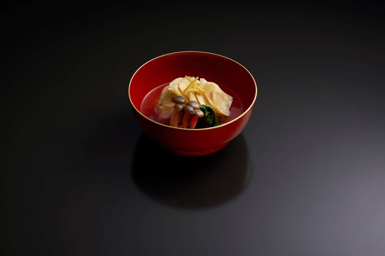 脂ののった甘鯛の旨みにほんのり栗の甘みが重なる取合せは、まさに妙味。まるでウロコのように栗の薄切りを配した盛り方が目を引きます。美しく仕上げるコツは、北新地の割烹『さか本』元大将の坂本靖彦さん曰く「甘鯛の身側に隠し庖丁をしておくこと」。薄葛あんではなく、さらりと仕立てた美味だしをかけて上品に。秋ならではの一品のレシピを、動画でご紹介します。