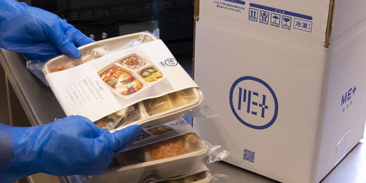 「忙しさに追われていても、病と向き合っていても、ご褒美のような一皿があれば前向きな気持ちでいられるはず」との想いで開発されたフローズン宅食デリカ「ME+-みたす-」。大阪・福島の日本料理『楽心』店主の片山心太郎さんと、大阪・西天満のイタリアンレストラン『MAKIBIⓇ』の河野 強さんがタッグを組み、10種の弁当を開発しました。調理は、電子レンジで温めるだけ。予防医療の観点から、カロリーや塩分がコントロールされた、バランスの良い弁当に仕上がっています。