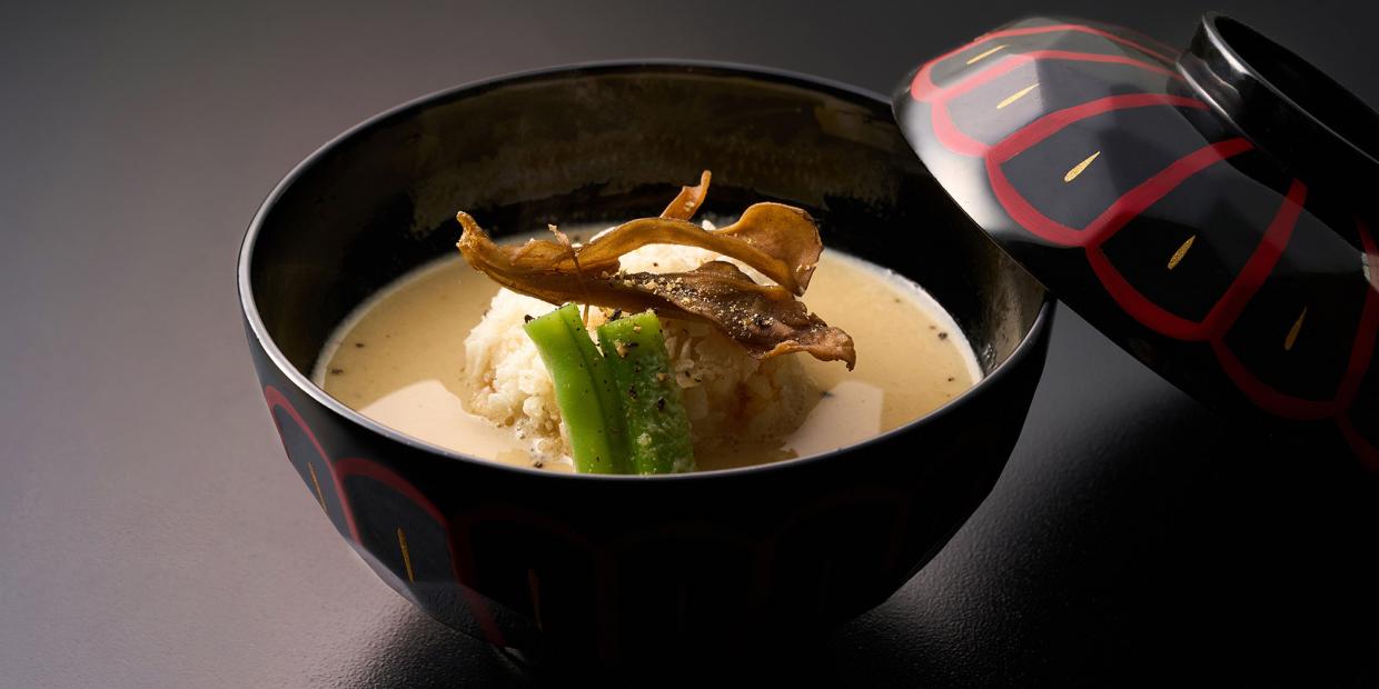 【レシピ付き】鱧真丈モッツァレラ射込みと舞茸の変わり椀——『和洋遊膳 中村』中村正明さん作