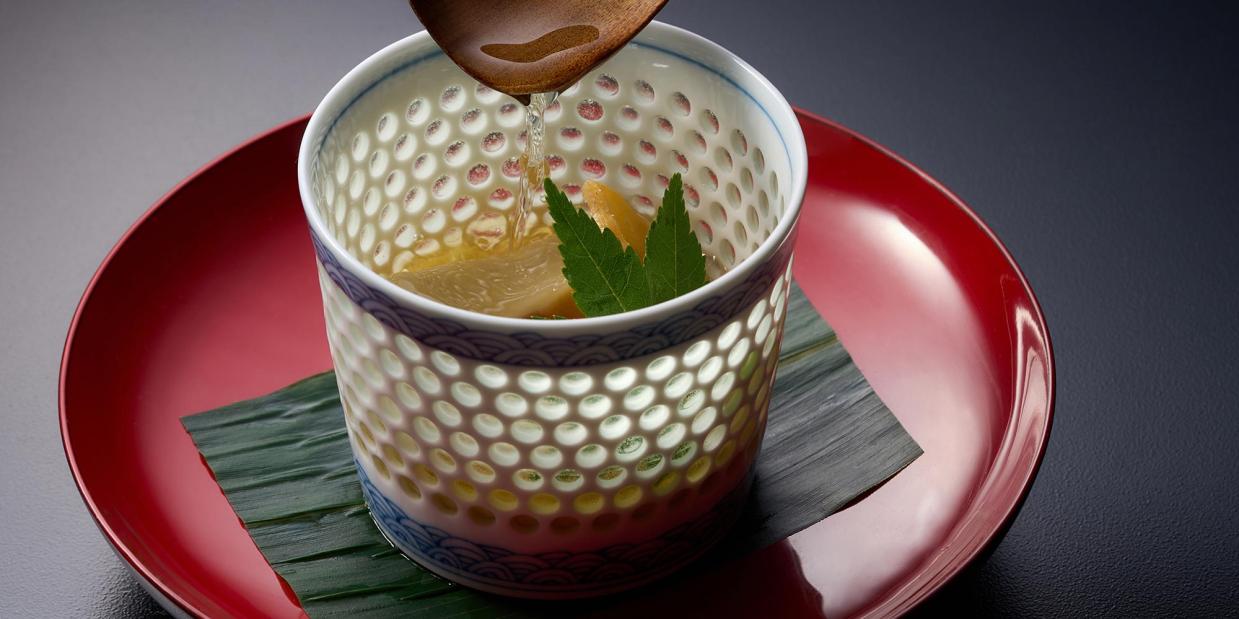振り柚子で仕上げようと思ったのですが、これがまったく合わなくて(笑)。柚子胡椒を昆布だしでのばして加えたところ、全体の味が引き締まってホッとしました。お店でお出しするなら、ここにトウモロコシ焼酎を少しかけたいなと思っています。トウモロコシらしい豊かな風味が加わって全体のまとめ役になってくれると思います。