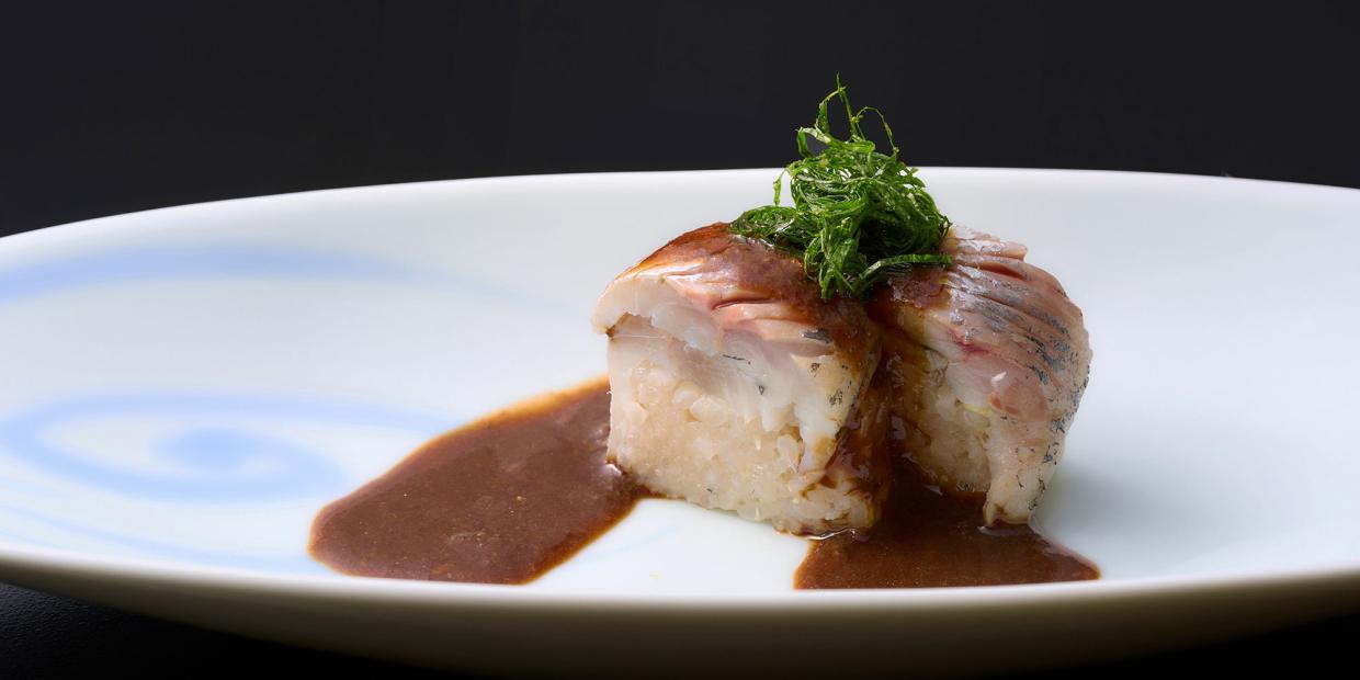 『おおさかもん料理 鮨 守屋』守屋栄一さん作 鯵の棒寿司 醤油麹ダレ