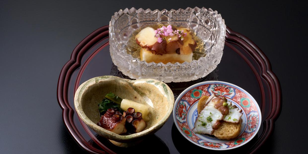 「辻󠄀調理師専門学校」岡本健二さん作 蛸の昆布水煮・蛸の油煮・焼き蛸の早煮