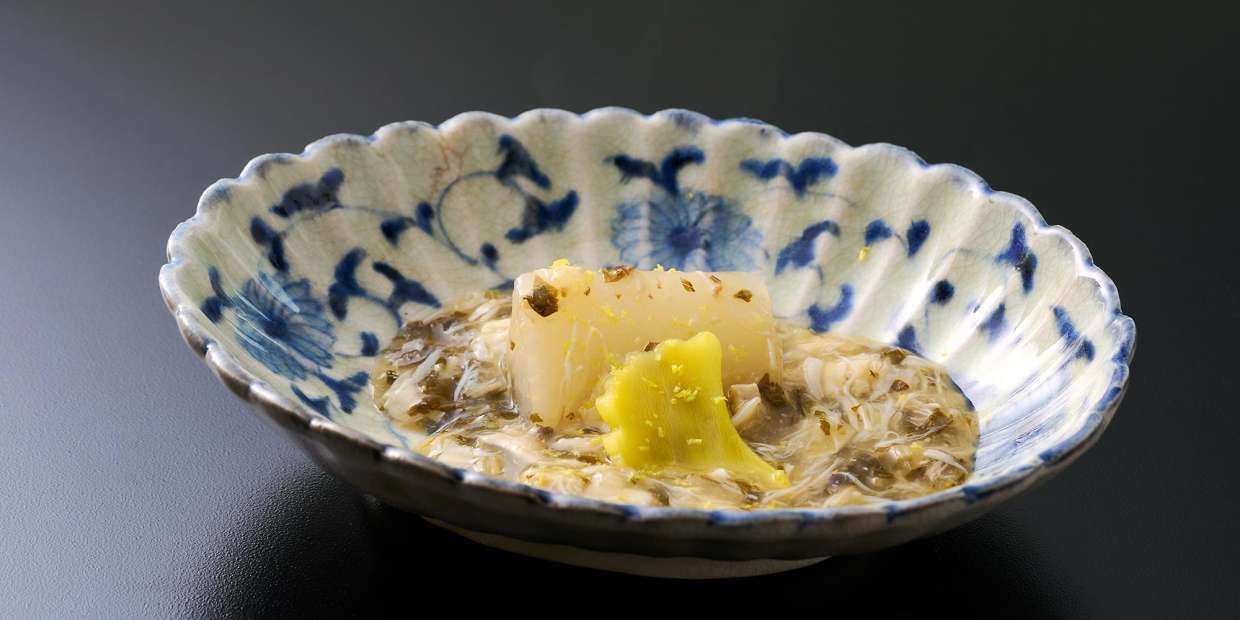 『弧柳』松尾慎太郎さん作・発酵大阪しろ菜と渡り蟹の湯葉あんかけ