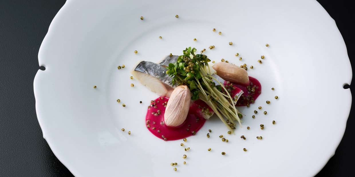 『割烹くぼた』久保田 博さん作・大阪湾サゴシのビーツ酢味噌添え