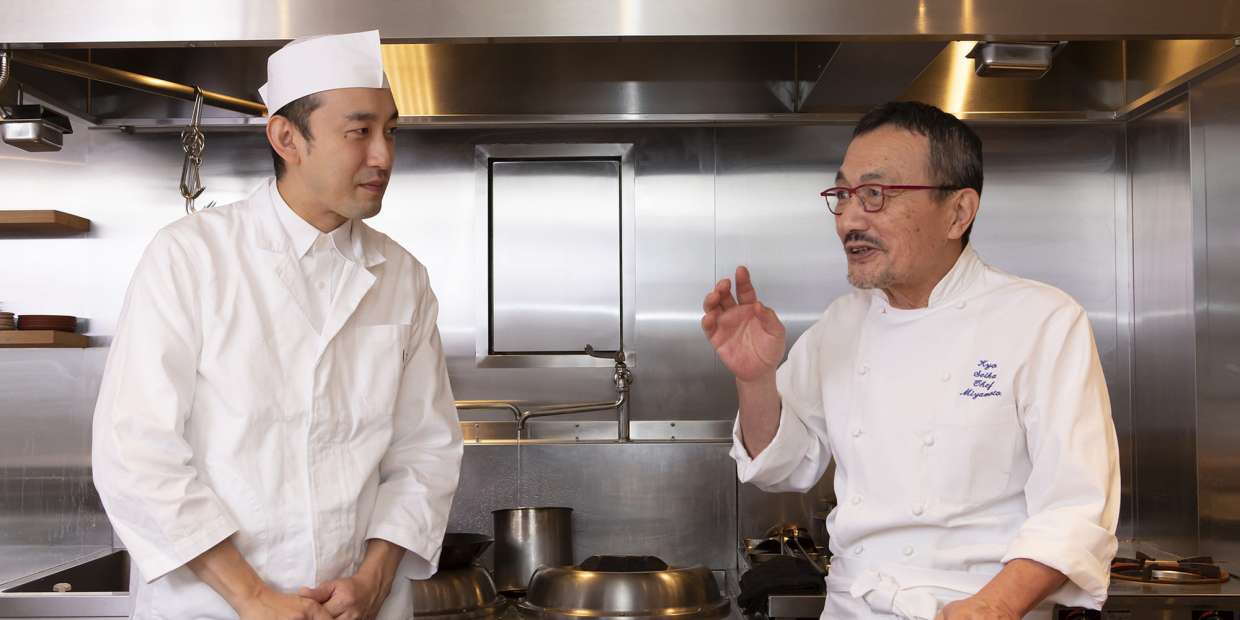 「昆布とカツオから引いたものとは違う、旨みあるだし。特に、中国料理の『湯(タン)』を学びたいんです」と熱望するのは、大阪・肥後橋にある人気割烹『にしの』店主・西野正拡さん。ラブコールを送ったのは、“透明感のある中国料理”と称される、京都・岡崎『京、静華』の宮本静夫さんです。「ギリギリまで調味を削ぎ落した宮本さんの料理は、和食に生かせるものも多いと思うんです」と西野さんは話します。