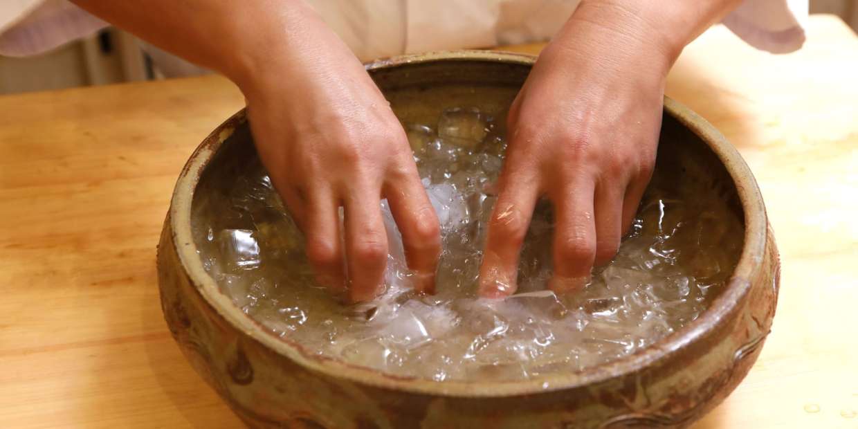 氷水や流水などで魚介の造り身を洗う。ひんやりとした口当たりと、身を適度に締めることで生まれる食感、さっぱりとした食味で、夏向けのお造りの手法として知られる「洗い」。水質汚染や自然破壊などで海の環境が一気に悪化し、「魚が石油臭い」といわれた昭和の高度成長期には、造りで出す魚介の匂いを取るため、さかんにこの仕事が行われたそうです。今は、海の環境が保たれ、新鮮な状態で魚介が手に入る時代。大阪『懐食清水』店主・清水俊宏さんは、涼の演出だけでない「洗いの可能性を探りたい」と言います。そもそも洗いのメカニズムとは? どんな効果を狙うべきか? 食感と食味に注目し、農学博士・川崎寛也先生と検証します。