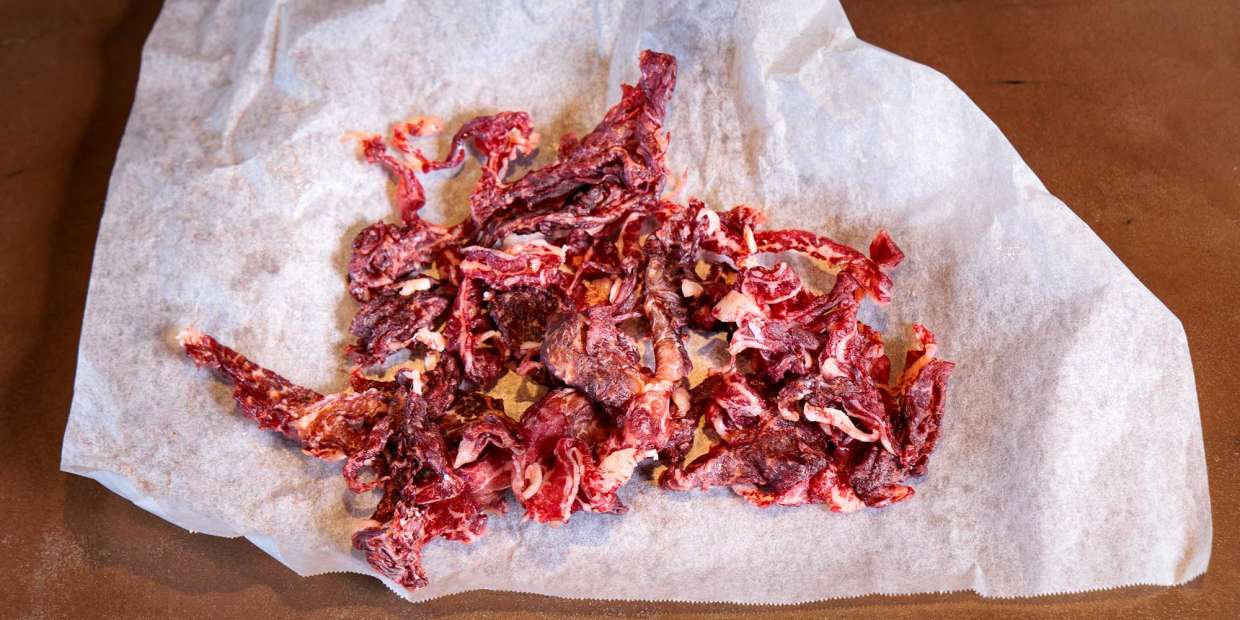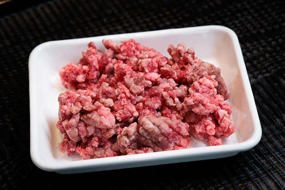 約30日ドライエイジングした経産牛のリブロースのミンチ。