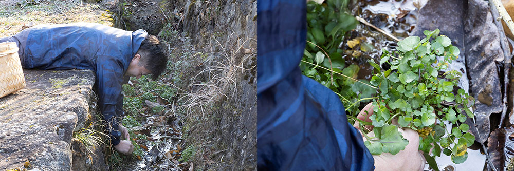 摘みたてのオランダガラシはピリッとした辛みとほろ苦さが鮮やか。