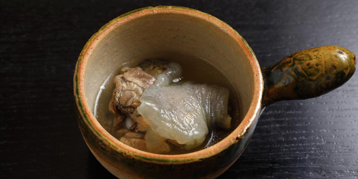 味を見ながら、スッポンだしに煮詰め酒を少しずつ加えていったので、分量が出せませんでした。スッポンだしの濃度によっても煮詰め酒の量は変わるので、ぜひ試してみてください。