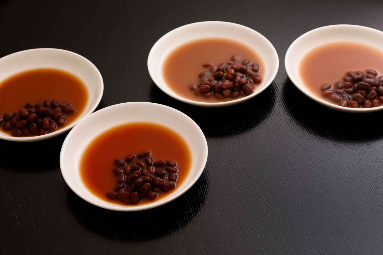 小豆を戻すには、渋切りが必要。一晩かけて浸水したり、何度か下茹でしたりと、その方法は様々ですが、目的は小豆が持つ渋みやえぐ味を除くこと。浸水しても、下茹でしても、その汁を捨てるというのが定石ですが、「そうすると小豆の色素が半減して赤飯が色よく炊けない。戻し汁に色素を残すような渋切りの方法はないのか?」と疑問を持ったのが、『祇園 いわさ起』店主・岩﨑道一(みちかず)さん。そこで、「和食を科学する 料理理科」第2回目のテーマは、小豆の渋切り。岩﨑さんの実験を、農学博士の川崎寛也先生が検証します。