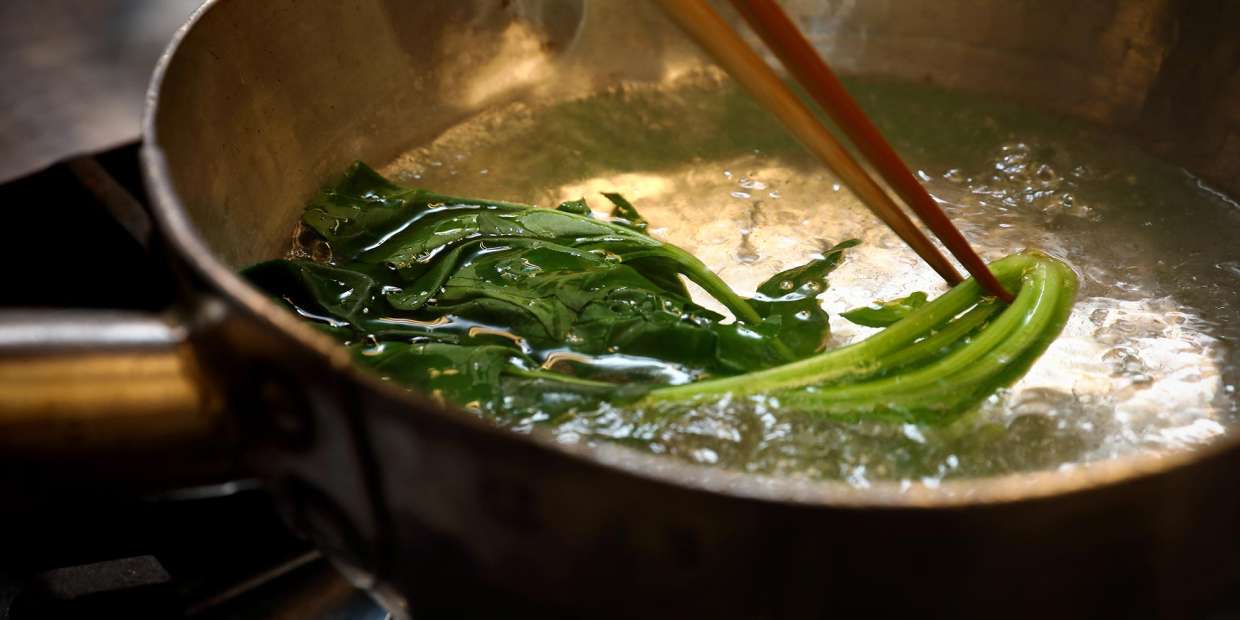 例えば、青菜をお浸しにする場合。塩茹でし、冷水で急冷してから浸し地に浸けるというのが一般的な手法です。「なぜ塩を入れて茹でるのでしょう?」。京都の料亭『菊乃井』四代目・村田知晴さんの素朴な疑問から、4回にわたるテーマは青菜に。第1回目は、緑の色素・クロロフィル(葉緑素)に注目。村田さんと農学博士の川崎先生が、青菜の色を保つ茹で方を模索し、塩茹での本質に迫ります。