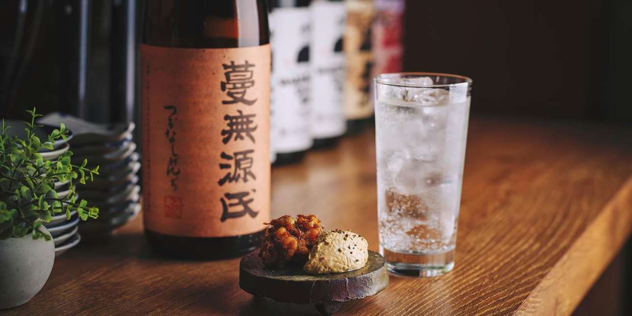 外からも見えるよう棚に並べられた焼酎は、今や約150種類。そのほか、日本酒、クラフトジン、ウイスキー、リキュールなど店に置く酒はすべて日本産。“日本の酒と小皿料理”をコンセプトにした立ち飲み店『酒庫フジモト』の開業は2023年。スタンディングで15人も入ればギュウギュウになる小さな店を切り盛りするのは、仕込みも含めて店主の藤元真司さん一人。ゆえに、「如何に立ち回りも効率も良いメニューを揃えるかが重要ですね」と語る。