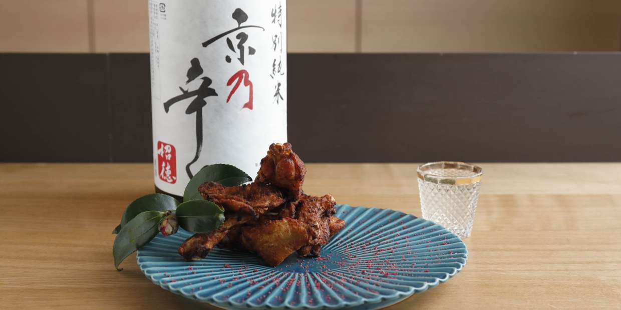 梅干しのまろやかな酸味と昆布の旨みが、ビールよりも日本酒に寄り添うポイント。京都・河原町五条のカジュアル和食『京都さしみ丸』の店主・今村健志さん考案の唐揚げは、小粋なフィンガーフード仕立てです。