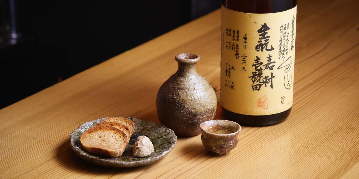 大阪・西天満の酒亭『お料理 雨ニモマケズ』のコースは、付き出しから始まり、造り、お椀から甘味まで7~8品。「肴」と謳う一品は、店主の中田孝太郎さんが日本酒に合うよう自家製したパンを添えた味噌パテが定番です。今回は河内鴨バージョンをご紹介。モモ肉の脂も使ってコクを深め、さらにキノコのオイル煮で秋味に仕上げた新作です。