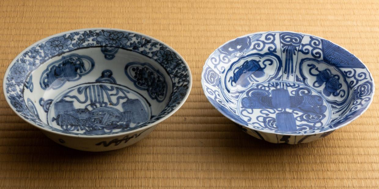 古染付、呉須、祥瑞(しょんずい)…。白地に青一色の絵付けをしたうつわには幾つかの種類がありますが、どれもこれも染付なのでしょうか? 実は、染付には一つ重要な決まり事があります。それは一体なんでしょう? 今回の十問十答は、意外と知られていない染付の基本を『菊乃井』の村田知晴さんが学びます。「染付の広く深い世界を知るためには、まずこの二つをよく理解すること」と、『梶 古美術』の梶さん親子が選んだテーマは、古染付と呉須。その成り立ちや区別、目利きのコツ、そして色絵との違いなどを分かりやすく解説いただきます。