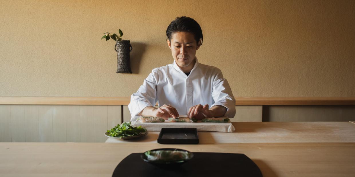宮下さんは三重県出身。調理師学校卒業後、祇園の日本料理店の門を叩いた。「『祇園丸山』の丸山嘉桜(よしお)さんには常に勉強する意識や美的感覚を、『祇園 さゝ木』の佐々木 浩さんにはお客さまを楽しませる対話や“攻め”の姿勢を学びました」。