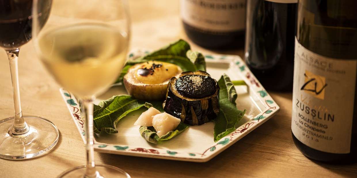 発酵調味料×日本酒の相性は言わずもがなではありますが、ワインも同じ醸造酒。この連載でも、醤油×ワインの可能性は幾度となく語られてきました。そこで、今回のテーマは味噌。旬を迎えるナスとイチジクを、赤・白と2色の田楽に。「和食こそワイン!」という心強い2名の指南役に、それぞれとのマリアージュをご提案いただきます。醤油がワインと合うならば、そのルーツである味噌も…と思いきや、第6回目にして意外な展開に…⁉