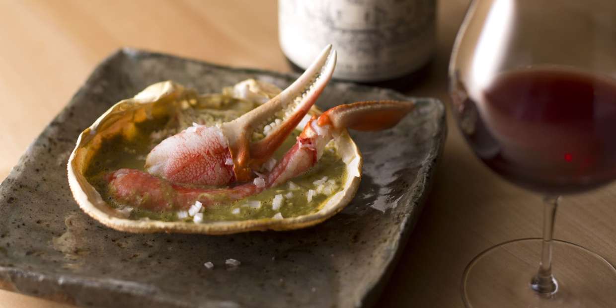 11月から3月、主に山陰から北陸の日本海沿岸で水揚げされるズワイガニ。世界では3000もの種類のカニが生息しますが、日本人の、冬のズワイガニに対する想いはひとしおです。高価な食材であることも手伝って、ワイン選びは失敗したくないもの。「カニの強い旨みや甘みを生かすワイン選びをお教えしましょう」とは、心強い2名の指南役。今回も日本料理『翠』からお届けします。
