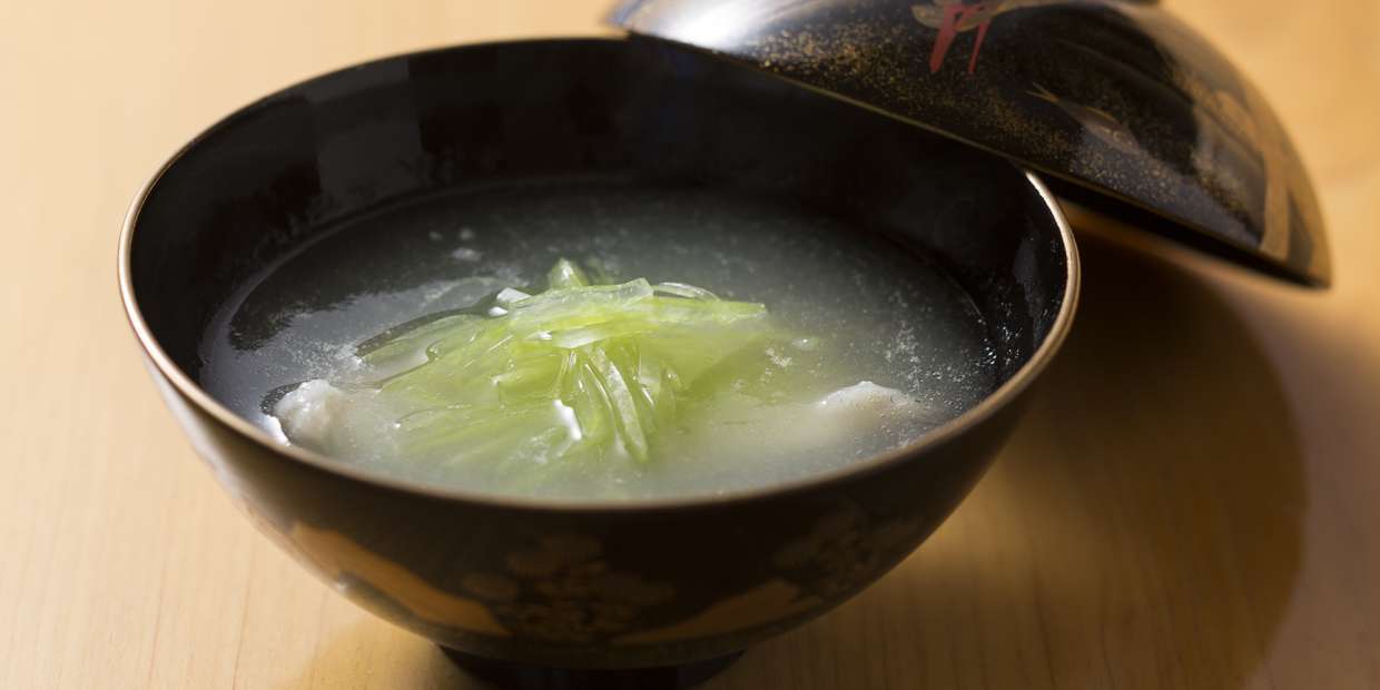 お椀は、椀種・つま・吸い口の3つの要素がだしの中でゆっくりと融合する様を味わうもの。加えて、だしそのものに特徴のある場合もあり、これらのバランスと強弱(香り、口あたり、濃度、旨み、油脂分など)をイメージし、ワインを選びます。