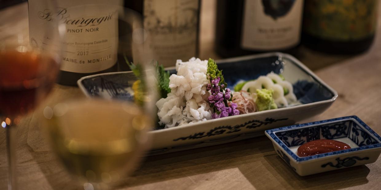 造りや椀、寿司に鍋。この季節、コースに必ずと言っていいほど組み込まれる鱧料理。特に「落とし」は、蒸し暑いこの季節、爽やかにいただける一品です。他店でも提供されることを思うと、冷酒ではない、他のお酒のバリエーションも持っていたいところ。そこで、「和食こそワイン!」という心強い2名の指南役に、すぐにでも実践可能なマリアージュをご提案いただきます。今回から、大阪・本町の『昇六』にてお届けします。
