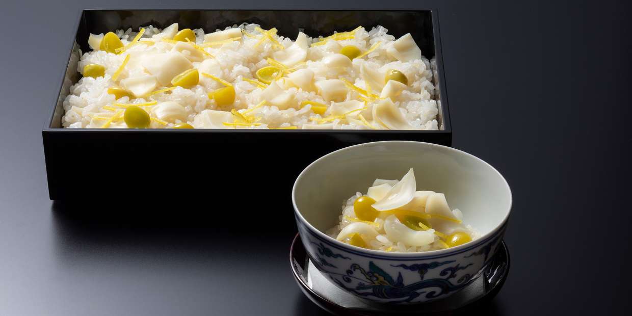 平安時代から食されていた「強飯(こわいい)」をルーツに持つ「御飯(おこわ)」。もち米を蒸した料理で、料理屋では「飯(いい)蒸し」とも呼びます。今回からは、本連載に合わせて「辻󠄀調理師専門学校」の日本料理の先生方が仕立てる料理もクローズアップ。調理のコツや独自の工夫などを伺います。晩秋らしく百合根と銀杏(ギンナン)を具材にした岡本健二先生のレシピは、帆立貝の旨みを潜ませた酒塩がポイントです。