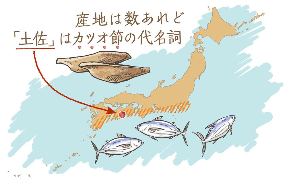 カツオ節の風味を利かせた料理・調味料の名に、土佐煮や土佐醤油、土佐酢など「土佐」を冠することがあります。土佐は、日本の旧国名のひとつ。現在の高知県にあたり、良質なカツオ節の産地として古くから名を馳せました。しかし、カツオ節を産するのは土佐だけではありません。千葉、静岡、三重に和歌山、鹿児島など太平洋側には多くの産地があり、それぞれ日本の食文化を支えてきました。では、その中でもなぜ、土佐の名が用いられるのでしょう。歴史の流れと共に紐解きます。