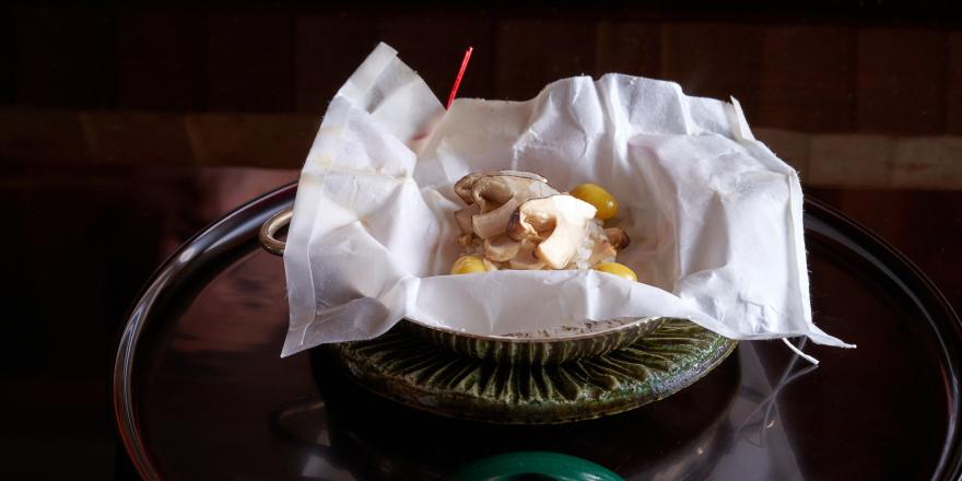 旬の幸を大胆に使い、華やかな仕事で五感を楽しませる『銀座 小十(こじゅう)』。冬の幕開けとなる1品目に登場するのが「南京茶碗蒸し」です。カボチャの上品な甘みがたっぷり溶け込んだ玉地に、豪華な魚介を忍ばせて。魚介の存在感が際立つ、シルキーな玉地に仕立てる徹底した下準備が肝です。