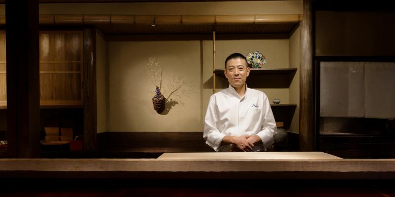 調理師学校を卒業後、京都の粋筋が贔屓にする名割烹『祇園 川上』で、25年にわたり腕を磨いた南 建吾さん。2023年には、自身の店『二條 みなみ』を開き、今では京都でも評判の一軒として知られています。そんな南さんに5つの質問を通してお話しを伺いました。『祇園 川上』で培ったご縁を大切にする南さんの人柄が、言葉の端々に滲み出ています。