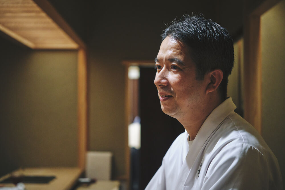 1978年、埼玉県生まれ。調理師専門学校を卒業後、東京のホテルの和食店に入り、その後、会員制商業施設に。24歳の時に京都の日本料理『和久傳』入社。『京都和久傳』に8年、『高台寺和久傳』に6年、『室町和久傳』に5年勤めた。2023年12月『徳ハ本也』開業。店名は中国の古典の一節「徳は本なり」から引用し、「徳を積み、励むことを大事とする」の意を込めた。独立までの1カ月間は富山県の氷見に滞在し、漁師や仲買人の元で仕事を学んだ。